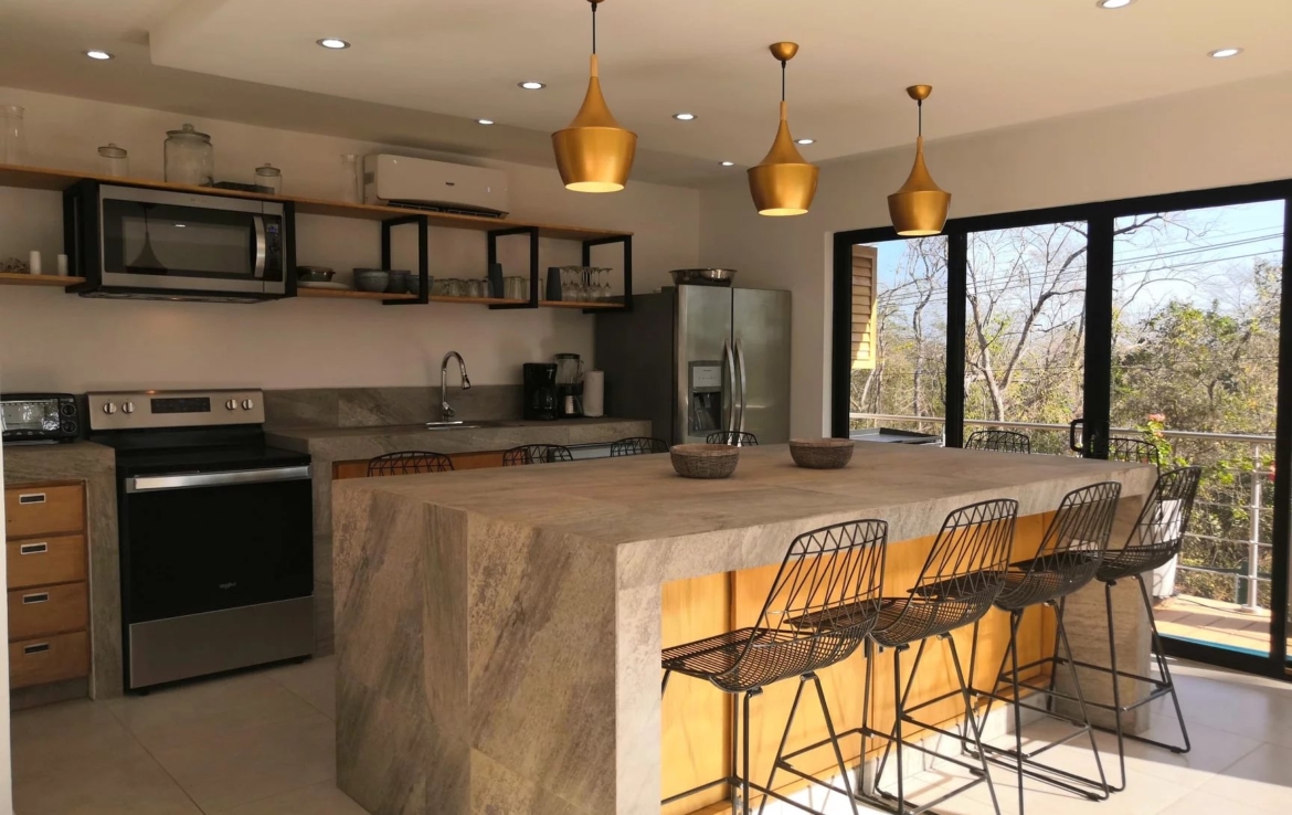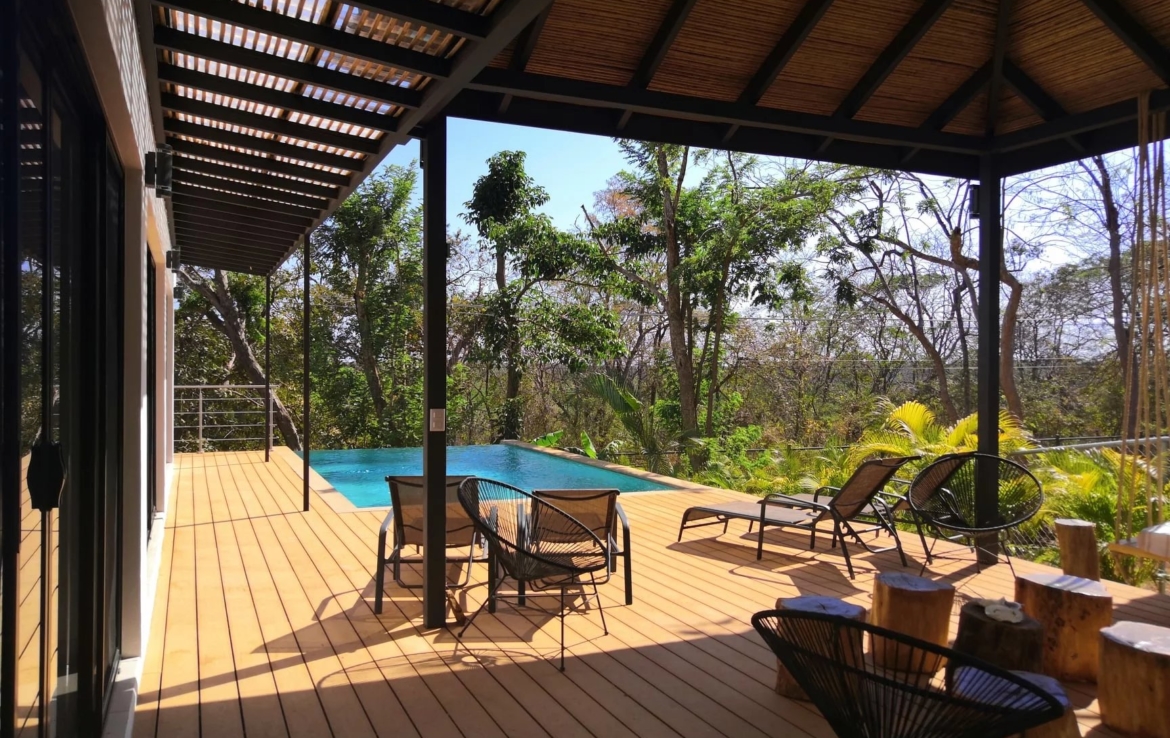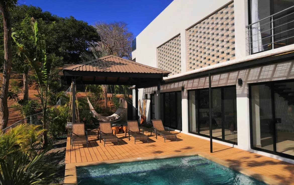 Villa conçue comme un bateau de croisière dissimulé dans un écrin de verdure. Son toit terrasse intégral vous donnera l’illusion de voguer sur la canopy jusqu’à l’ocean pacifique. Disponible à la location à la semaine, ou à la vente (rapport 10%). Cette villa neuve de 420 m2 offre 4 chambres et 4 salles de bain ouvrant toutes sur des terrasses et un jardin tropical avec sa piscine, au coeur d’une communauté sécurisée avec gardien. Elle est idéalement située à 500 mètres du centre de la plage de Tamarindo et du centre ville. Location de 3500 à 7000 Us$ la semaine ou en vente à 985 000 Us$ avec financement possible.https://youtube.com/watch?v=xWqaBFtzCX8