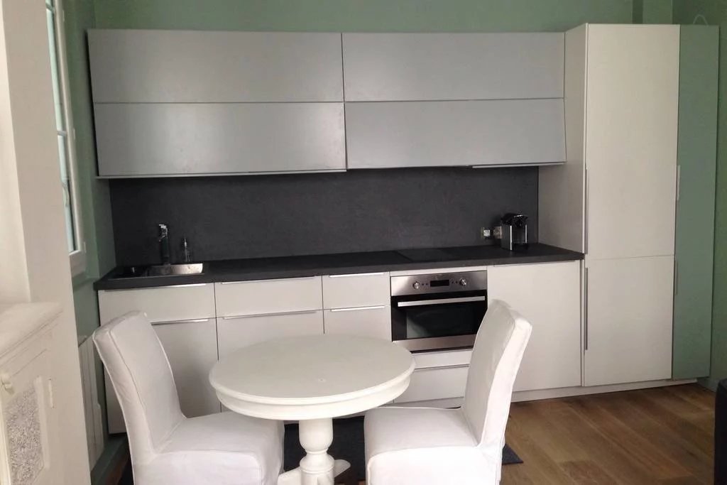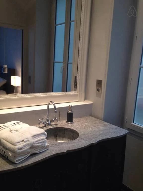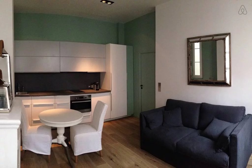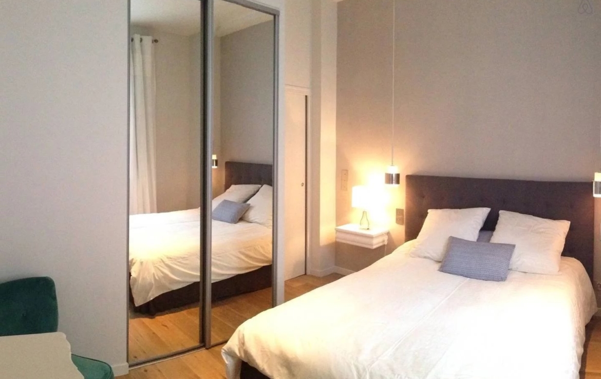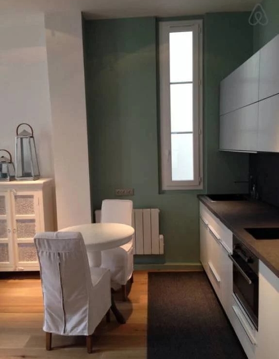 Très bel appartement de 2 pièces donnant sur cour ensoleillée au premier étage avec une belle hauteur sous plafond. Il comprend un salon avec un canapé lit, une cuisine équipée, une chambre avec sa salle de douche attenante, des wc.