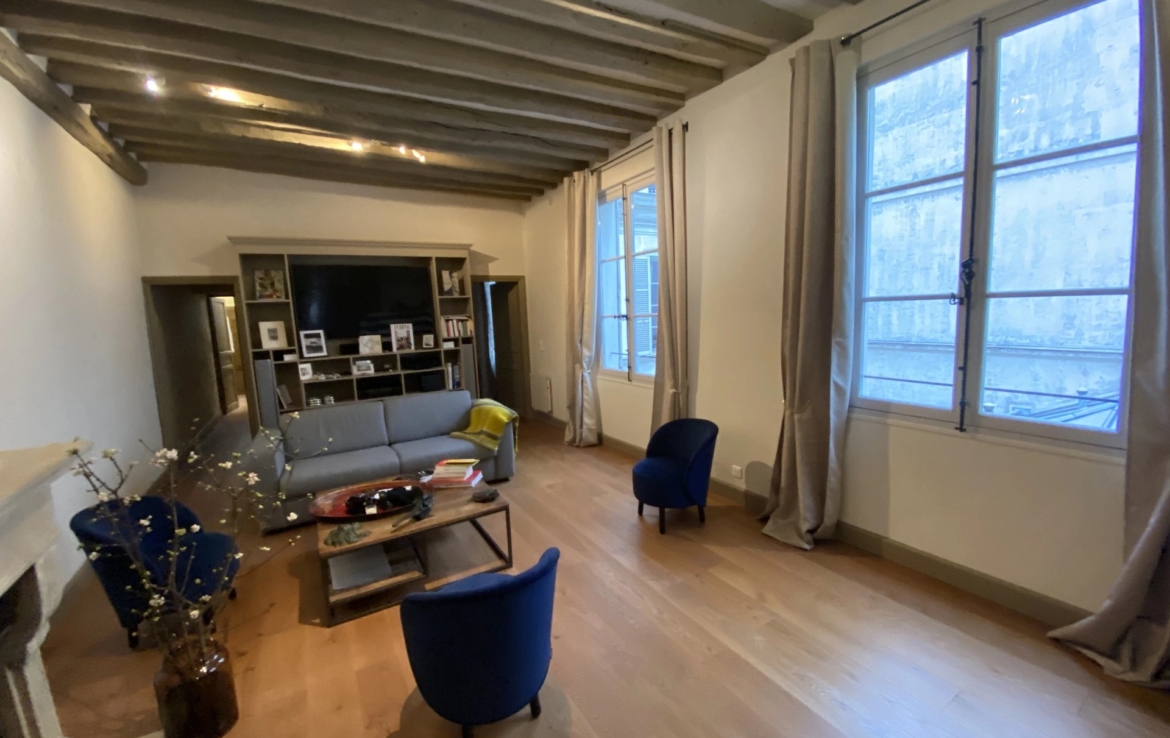 Magnifique appartement avec une belle hauteur sous plafond au deuxième étage d’un immeuble du 17ème siècle, donnant directement sur la Place des Vosges.