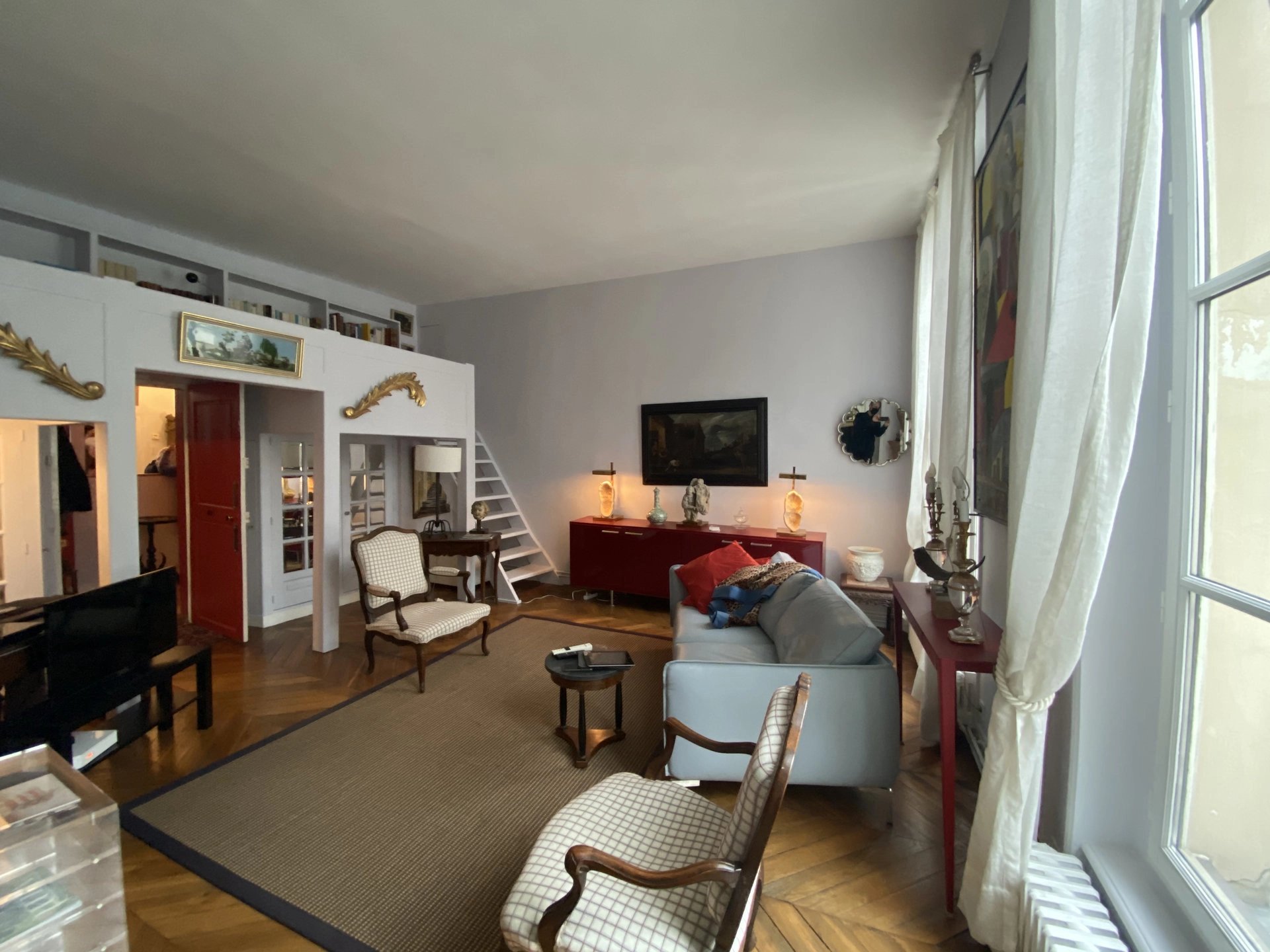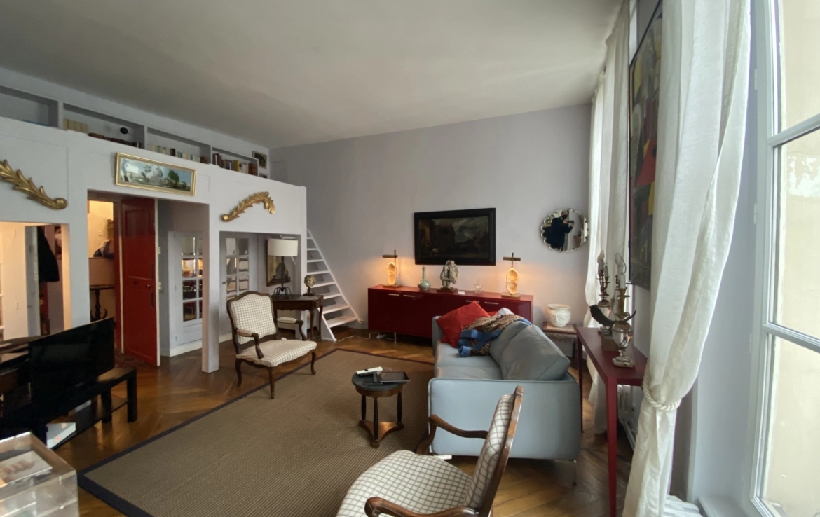 Très bel appartement atypique de85 m2 au coeur de l’Ile Saint Louis dans un bel immeuble du XVIIème siècle et au 3ème étage sans ascenseur. Il comprend une entrée, une grande cuisine dînatoire, un salon avec une mezzanine (possibilité d’un couchage double), une grande chambre, une salle de douche. 3,50m de hauteur sous plafonds et jolies boiseries dans la chambre. LOUÉ VIDE.Libre le 01/08/2022.