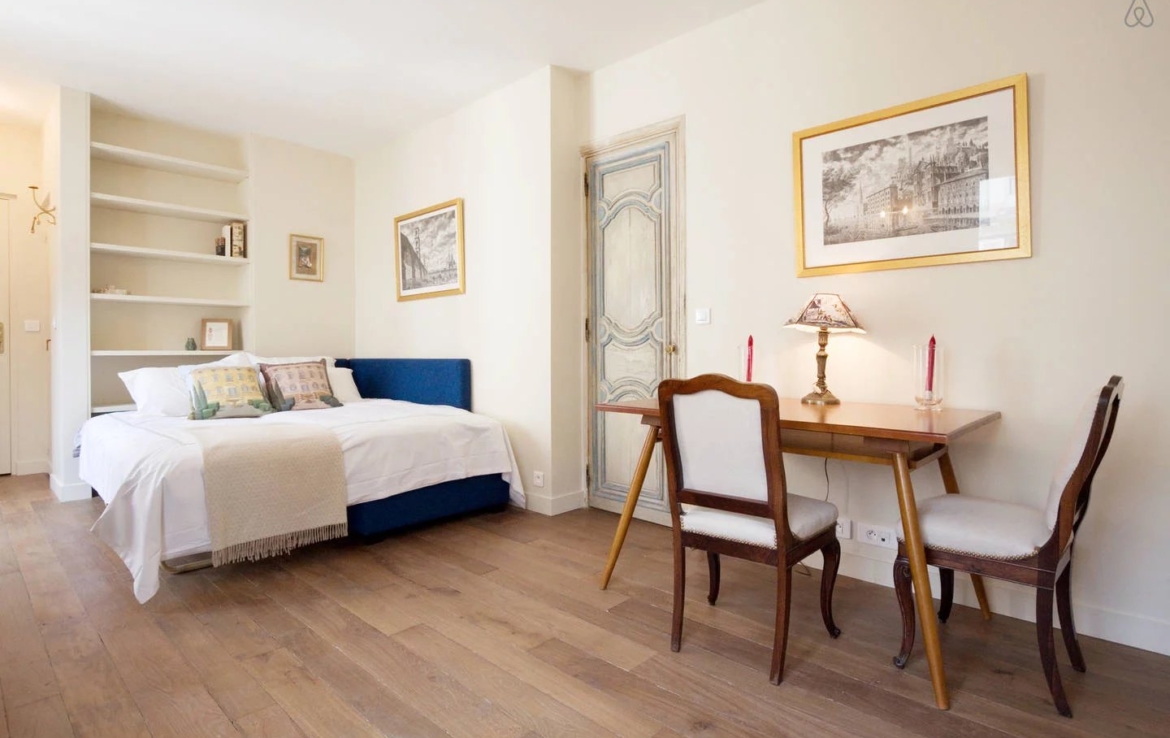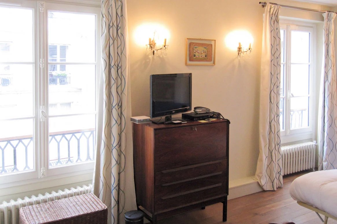 Studio au 4ème étage avec un ascenseur d’un immeuble ancien et sécurisé sur le quai de Béthune. Il comprend une pièce à vivre, une cuisine équipée avec une machine à laver le linge, une salle de douche. une petite pièce indépendante pourrait faire l’objet d’un couchage supplémentaire ou d’un espace bureau.