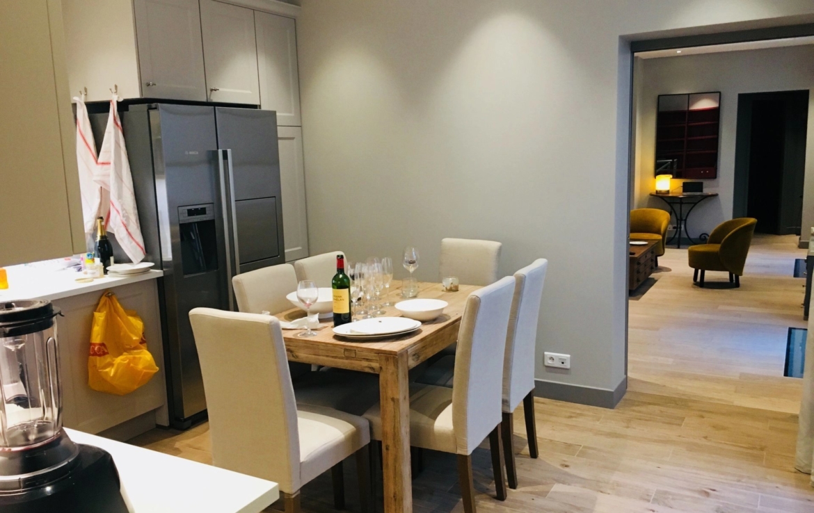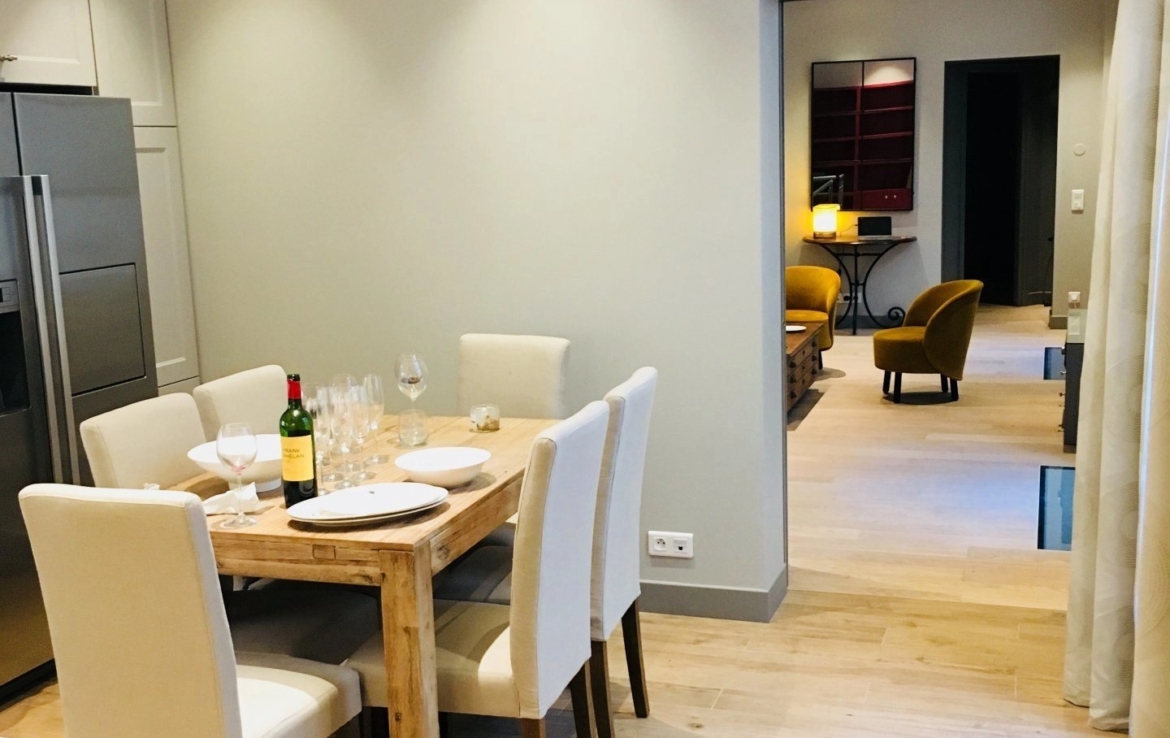 Appartement très calme avec une petite terrasse au RDC donnant sur cour pavée d’une jolie co-propriété de la Place des Vosges. Il comprend 3 chambres. Il a été rénové avec des matériaux de grande qualité et la décoration est soignée avec du mobilier haut de gamme.