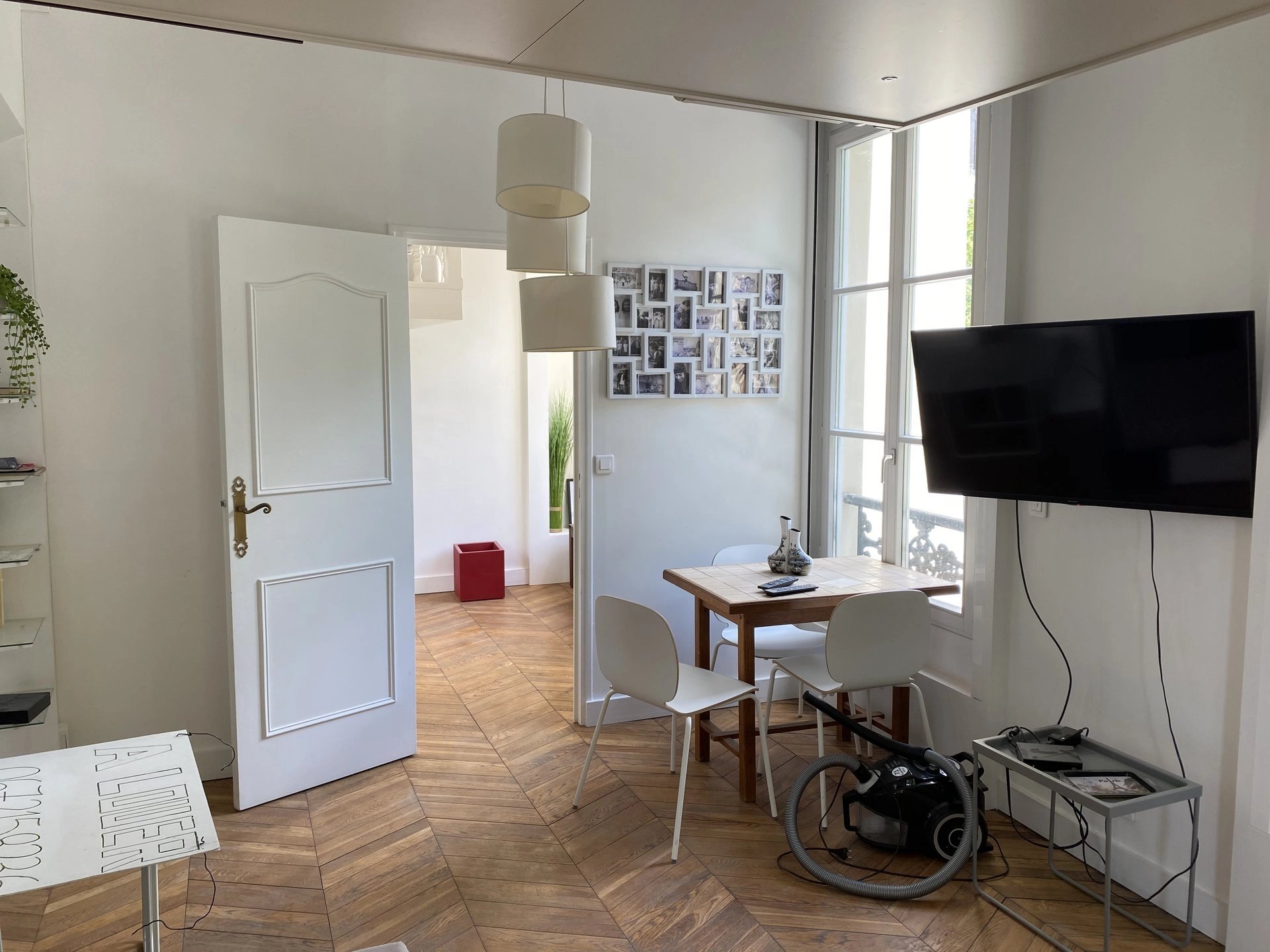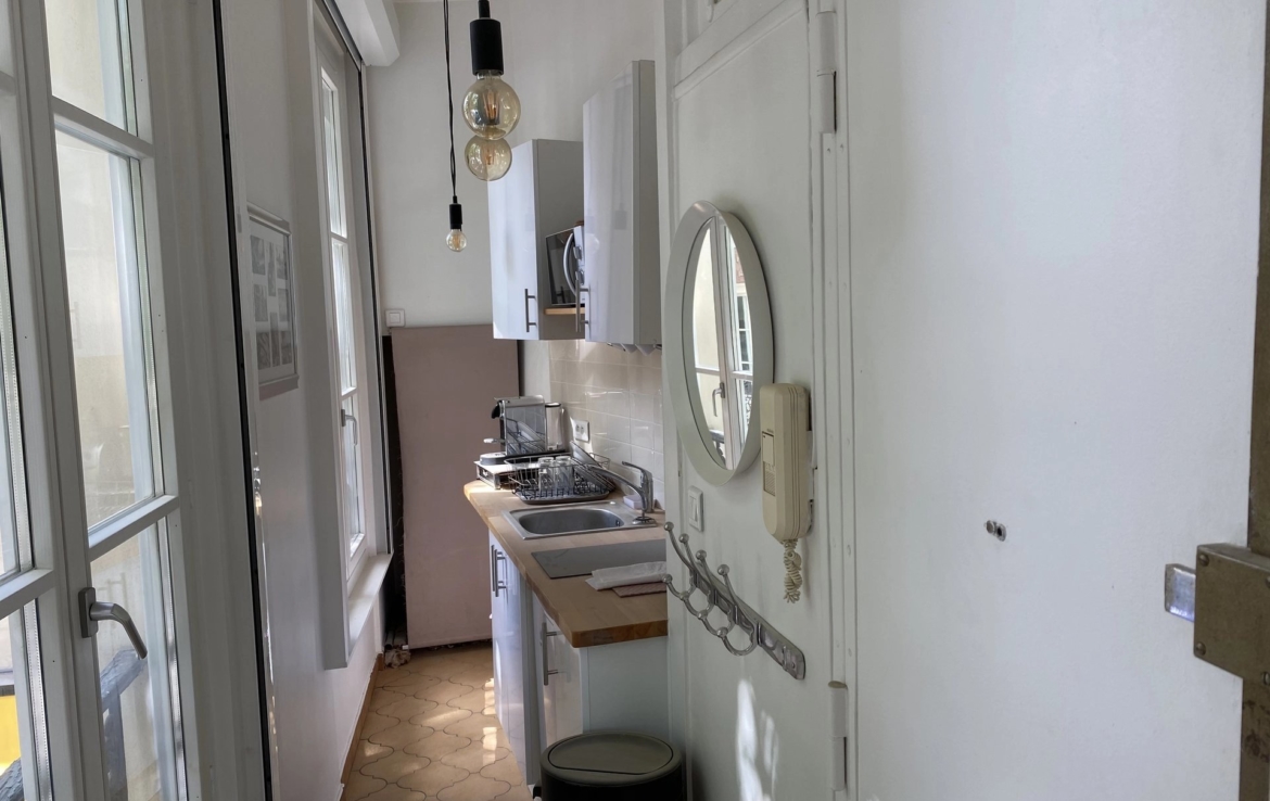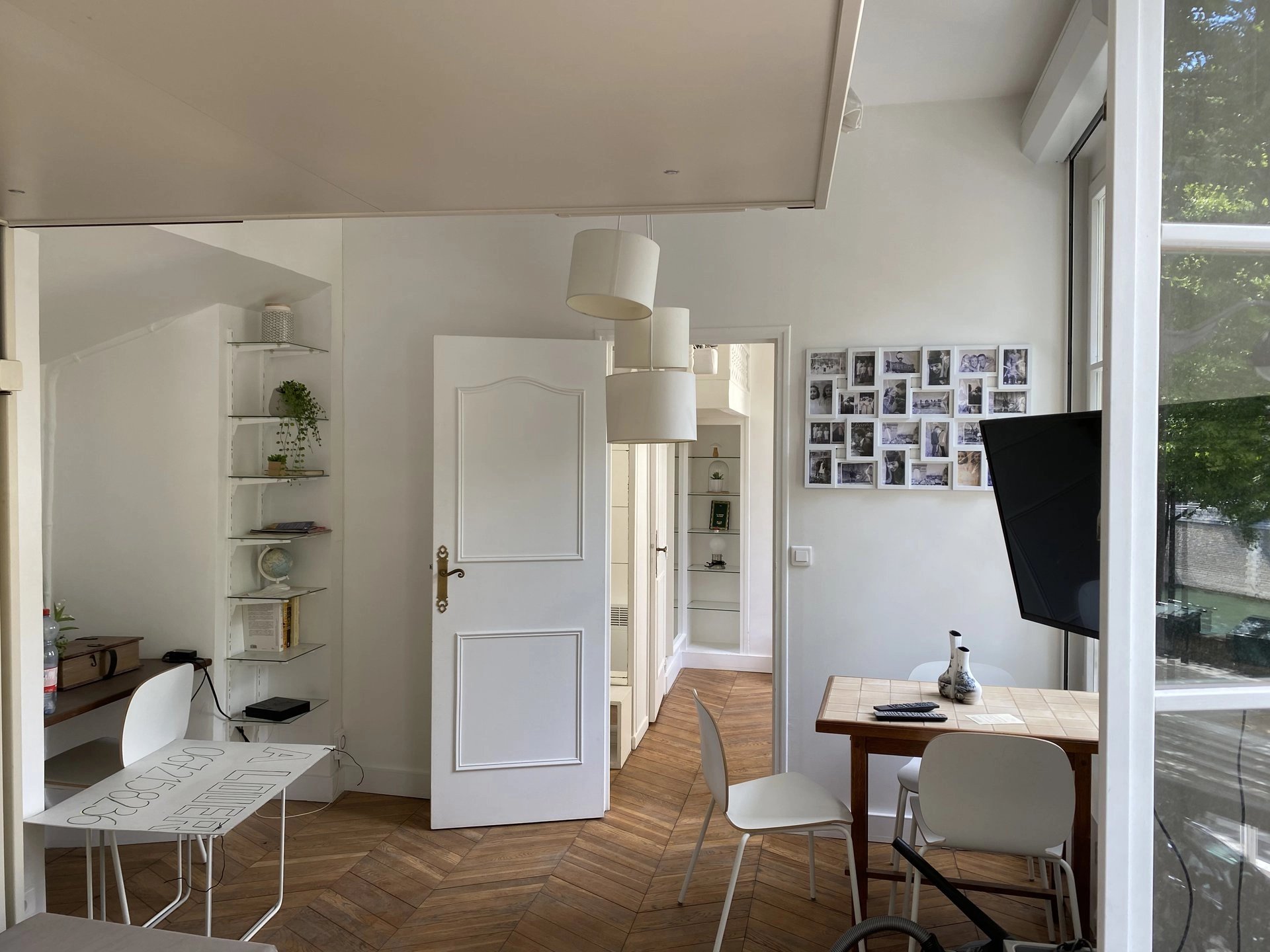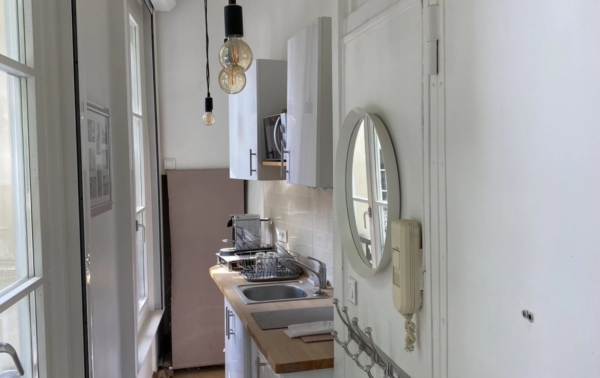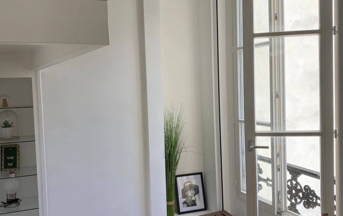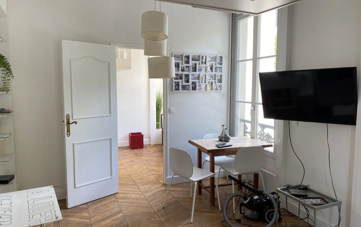 Appartement de 35 m2 au 3ème étage sans ascenseur. Il est très clair et bénéficie d’une vue sur la seine et sur Notre Dame. Il offre deux pièces dont une chambre avec mezzanine et une pièce de vie avec la possibilité d’un couchage supplémentaire pour deux personnes (lit escamotable par verrons hydrauliques au plafond).