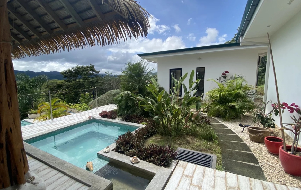 Magnifique propriété situé à 15 minutes de Tamarindo dans un environnement privilégié. La maison principale offre une pièce à vivre très agréable avec une cuisine ouverte, une petite pièce servant de studio de musique, un salon transformé en Home Cinéma, une buanderie, un cellier/atelier. La suite principale est attenante à la maison principale mais elle est indépendante, avec son dressing et sa salle de douche. Les deux autres suites pour les invités ou pour les locataires saisonniers. Un terrain de 3 500 m2 jouxtant celui-ci de