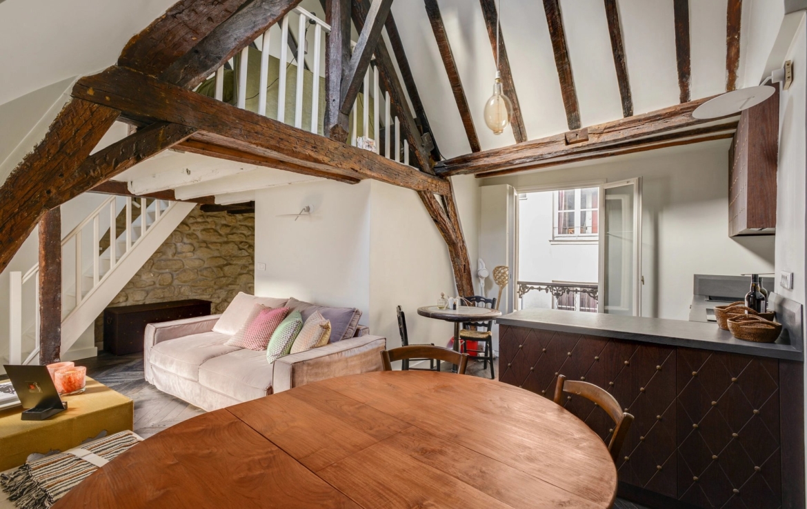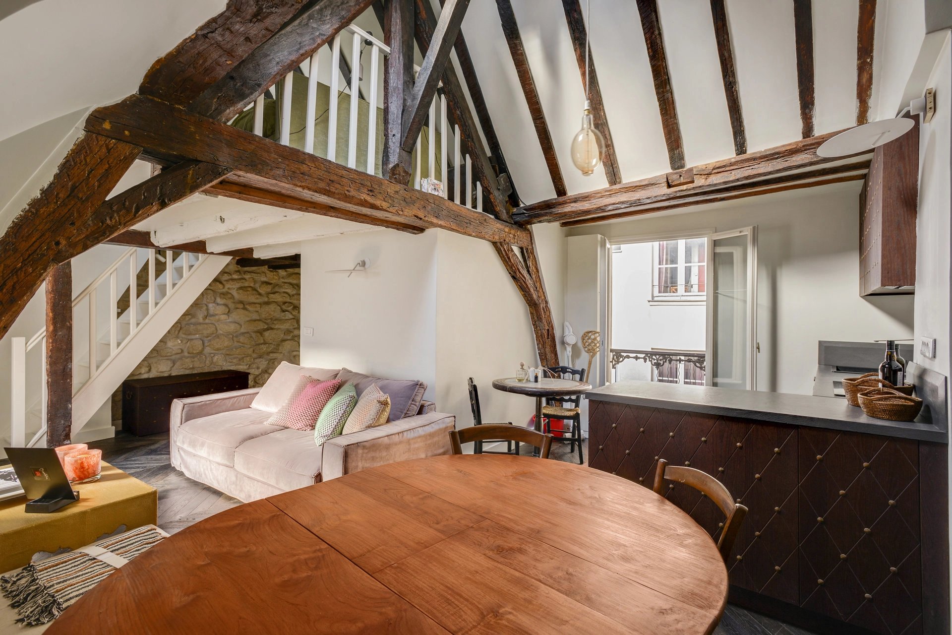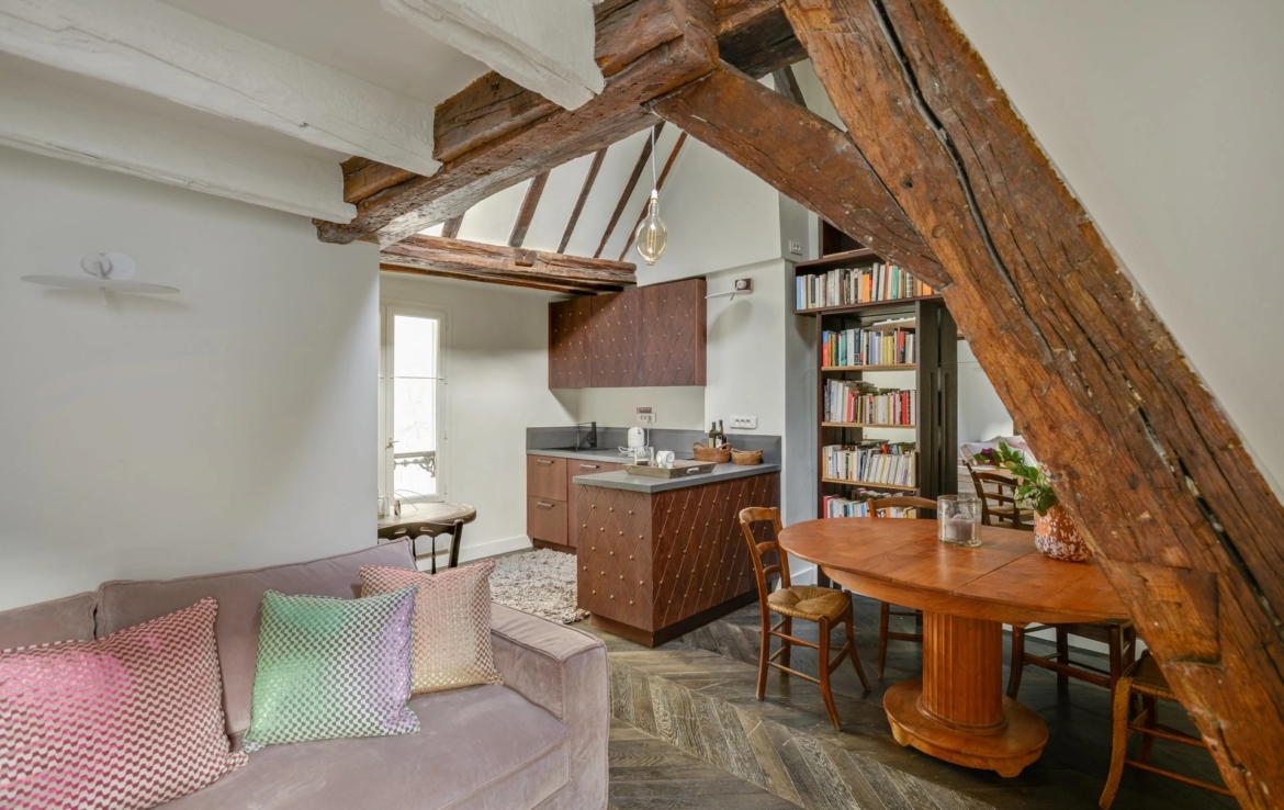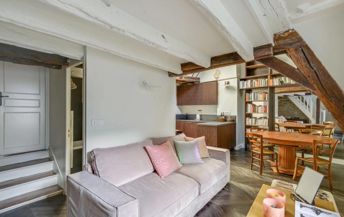 Petit appartement de charme au 3ème et dernier étage d’un immeuble du XVIIème siècle. Parfaitement fonctionnel et aménagé avec beaucoup de goût, il offre quatre couchages, une salle de bains, une cuisine entièrement équipée. Idéal pour un couple.