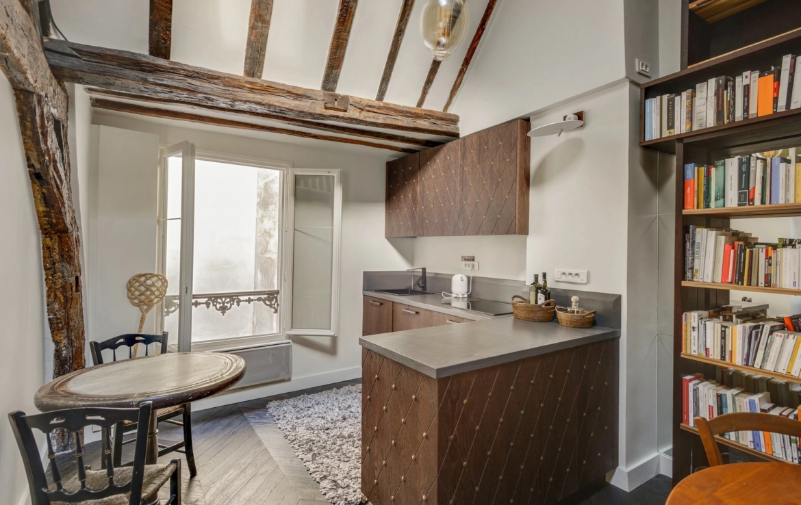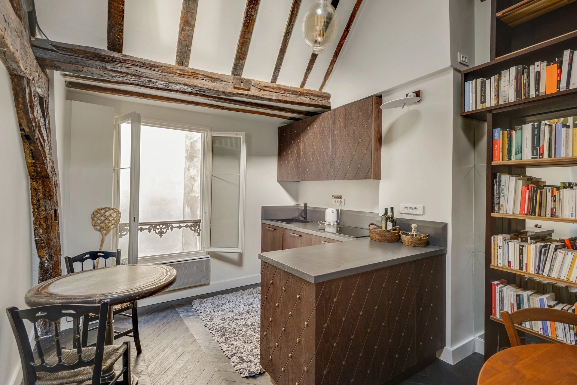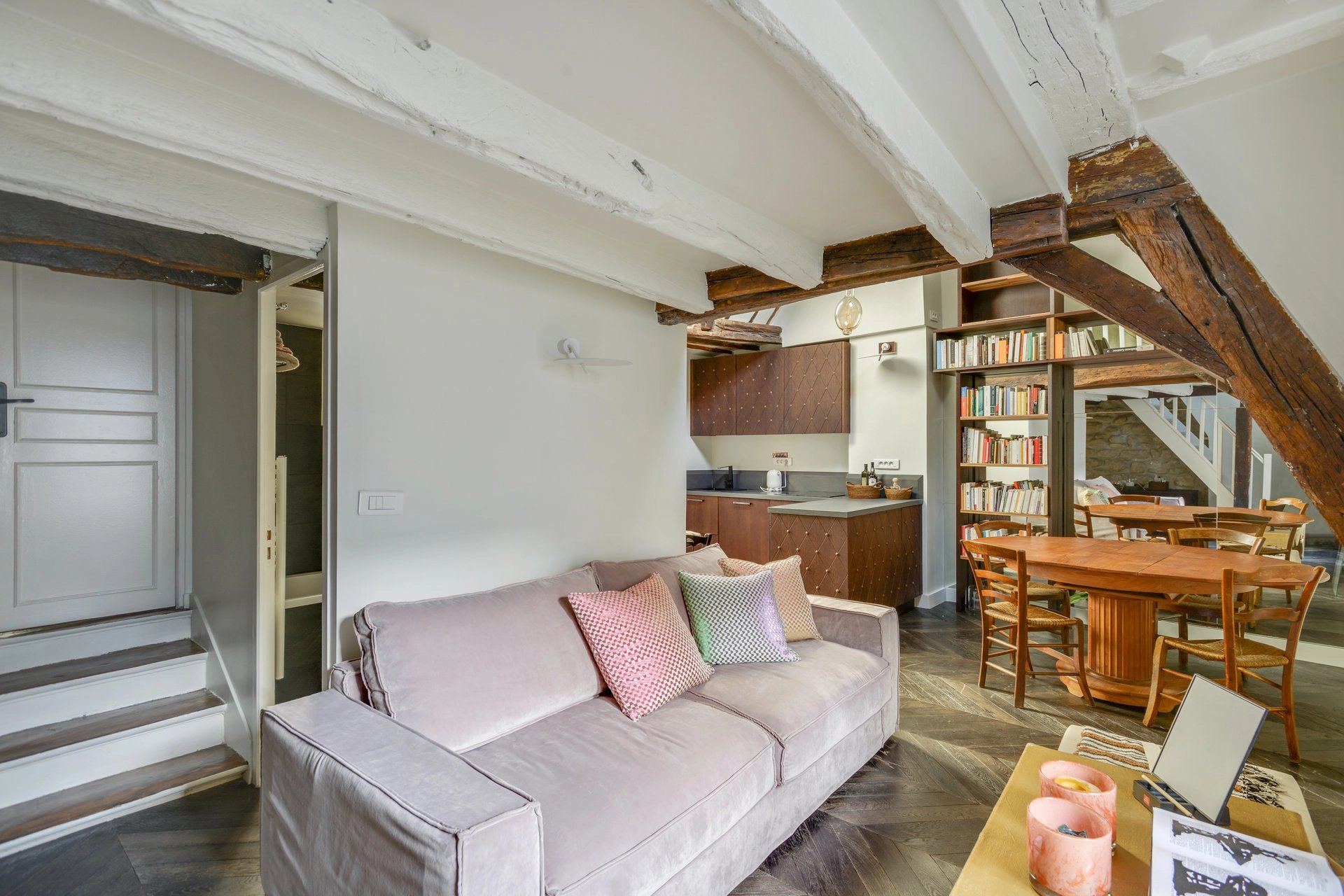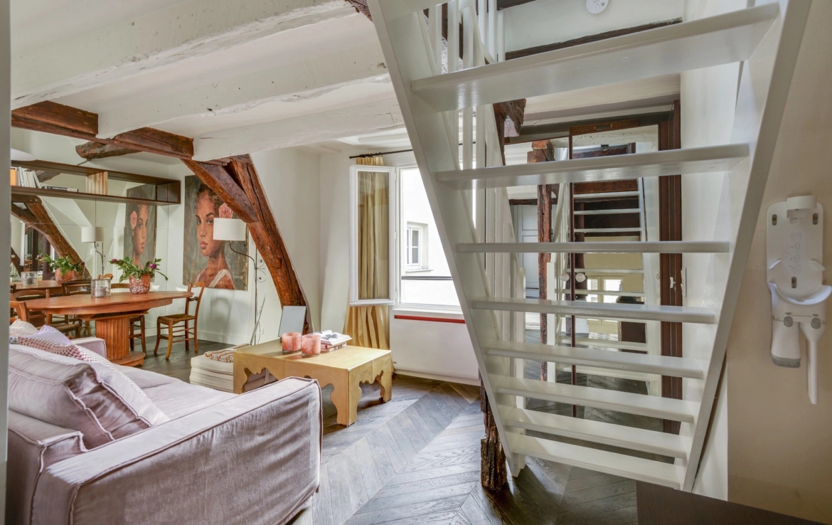 Petit appartement de charme au 3ème et dernier étage d’un immeuble du XVIIème siècle. Parfaitement fonctionnel et aménagé avec beaucoup de goût, il offre quatre couchages, une salle de bains, une cuisine entièrement équipée. Idéal pour un couple.
