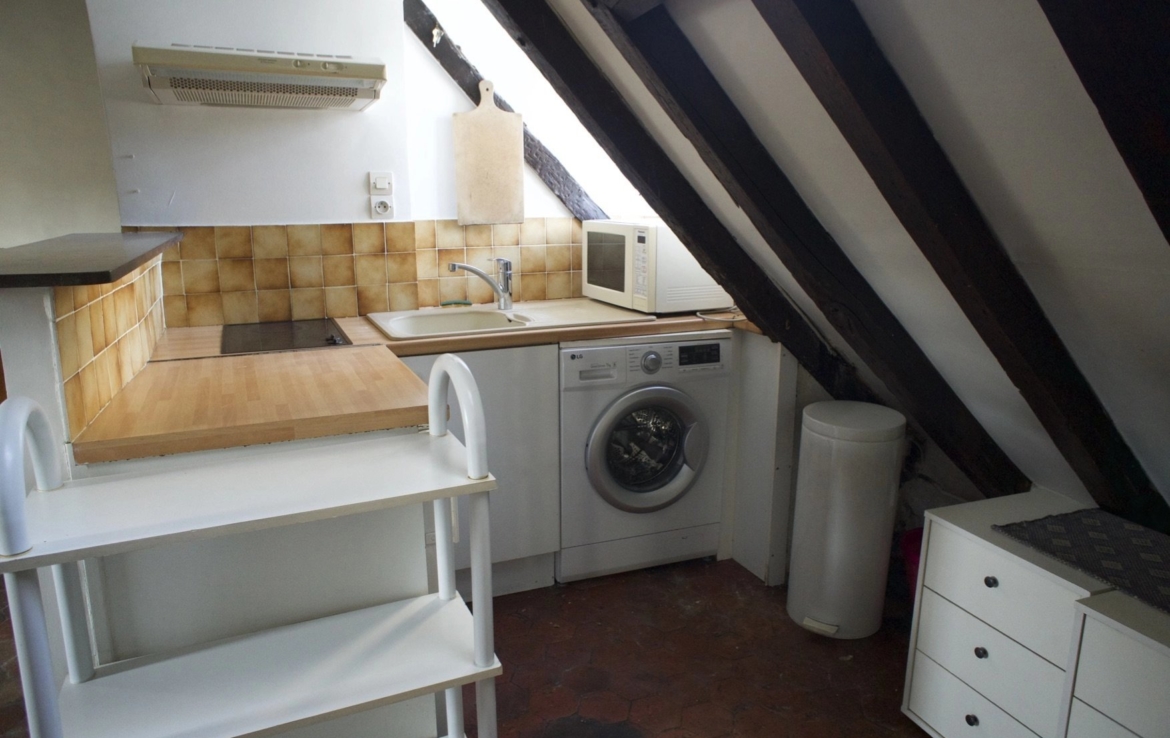 Au 5ème étage sans ascenseur (petits étages), ce petit nid offre une pièce principale avec une cuisine ouverte et un accès à la couchette en mezzanine (matelas de 140X190), une salle de douche avec wc.