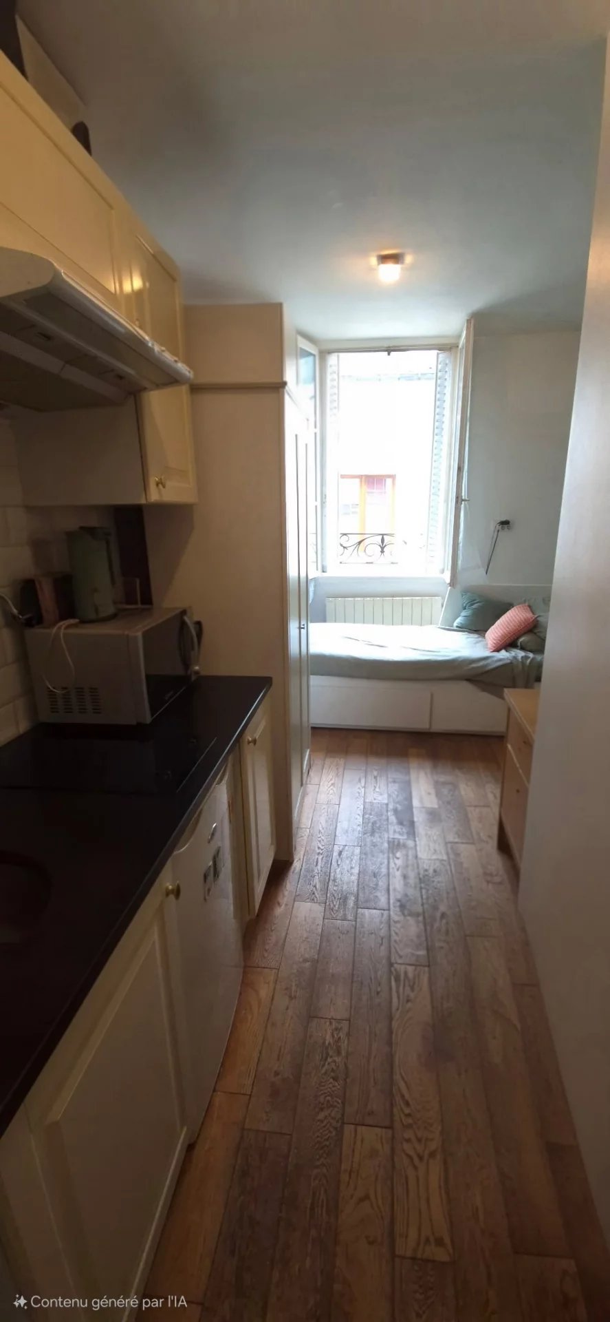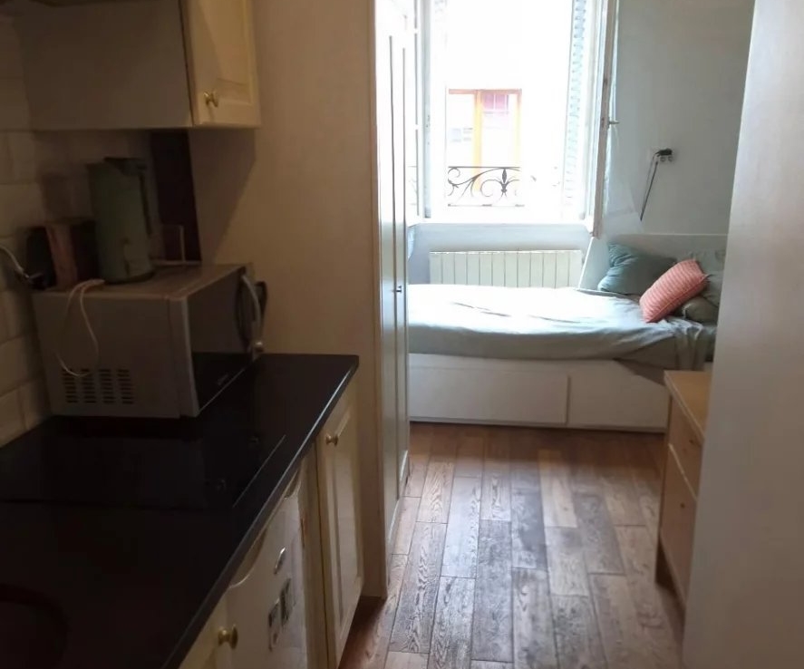 Studio au 3ème étage sans ascenseur, entièrement équipé et fonctionnel. Il comprend une pièce de vie, un coin cuisine, une salle de douche avec wc. Immeuble avec interphone.