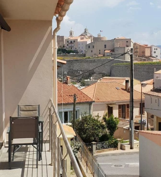 Une construction traditionnelle pour cette maison construite en 2027 entièrement climatisée, dans un quartier résidentiel à quelques pas des commerces, mais au calme. A proximité immédiate de la Citadelle et de la chapelle Loreto. Deux appartements de 80 m2 chacun sont à vendre; le premier au RDC et le second au premier étage avec l’autorisation de la ville de surélever d’un étage et ainsi d’augmenter la surface de 80 m2 sur l’existant avec une vue exceptionnelle sur la mer, les montagnes, la citadelle. L’espace salon salle à manger est généreux avec une cuisine ouverte entièrement équipée de 46m² avec des grandes baies vitrées donnant sur un agréable balcon filant avec un aperçu mer et de jolies vues sur les montagnes corses. L’espace nuit offre deux belles chambres avec rangements, et une salle de douche avec wc. Deux emplacements de parking privatifs sont positionnés devant la maison.