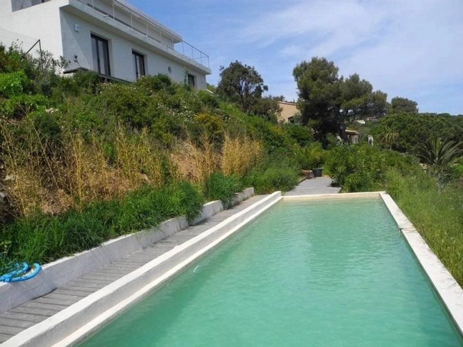 Très belle maison contemporaine sur deux niveaux avec piscine et avec une vue mer exceptionnelle. Située à quelques minutes à pieds de la plage de l’Escalet cette agréable habitation comprend quatre chambres, deux salles de douche, une salle de bains. La spacieuse pièce à vivre avec sa cuisine équipée s’ouvre largement sur la terrasse (45m2) qui surplombe la mer. Parking.